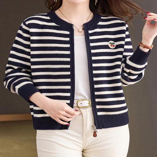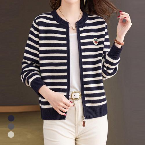 [다잇템]여자 키치 배색 아가일 체리 가을니트 가디건