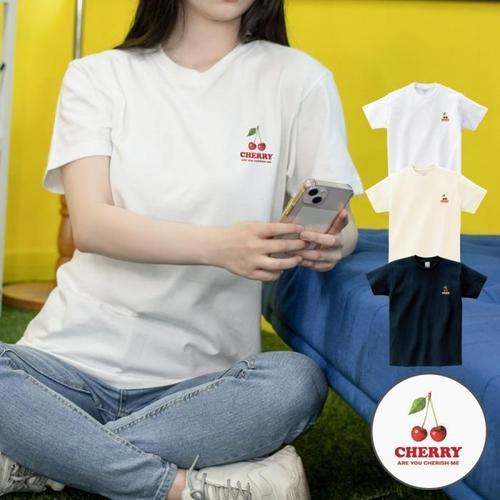 [오너클랜]인기상품 여성용 여름 자수 반팔 티셔츠 체리 반크롭 데일리웨어 [WFLLKSG_260305]