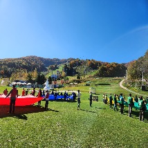 다우리 대형 응원기 깃발 흰색 청색 운동회 145cm 체육대회