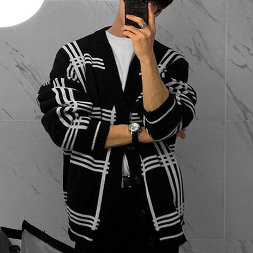 [모로엠]체크 패턴 루즈핏 브이넥 남성 가디건 ON-CA-QWFK5M9U