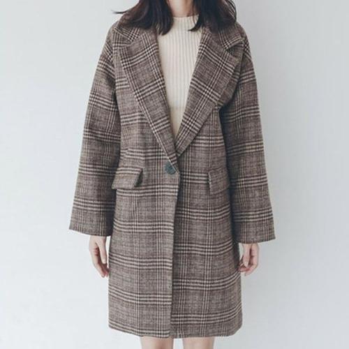 [엄지척]여성 캐주얼룩 모직 자켓 편안한 코디 체크코트 재킷_20342829_667501
