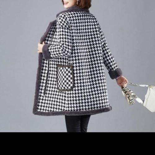 [엄지척]안감 퍼 윈터 체크 하운드 따뜻 하프 모직 코트 자켓_20342727_667501