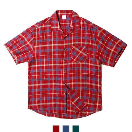 KING 체크 루즈핏 오픈카라 반팔셔츠 남방 WFKMXAN