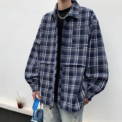 [오버나인] 남자 남성 루즈핏 남녀공용 체크 패턴 셔츠 남방
