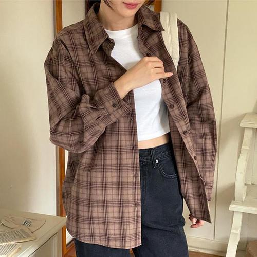 [다잇템]여자 어텀컬러 면원단 체크남방가을 언발 셔츠 (18990840A)