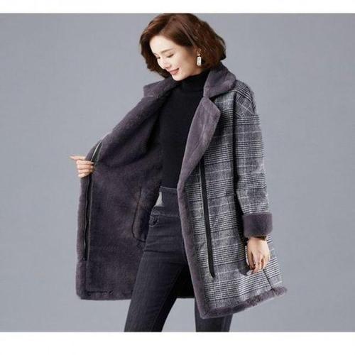 [셀러허브_여성트랜드패션]퍼안감 모직코트 퍼자켓 체크코트 W47150