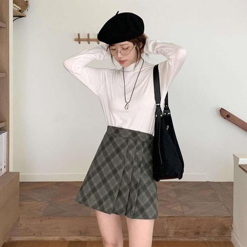 [신상오픈런]여성용 겨울 체크 플리츠 스커트 캐주얼 미디 스커트
