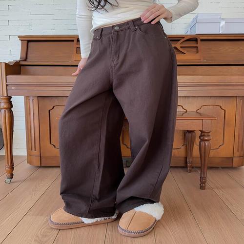 뽀글이 양털 기모팬츠 체크바지 밴딩바지 겨울 여자츄리닝 여성 와이드핏 일자