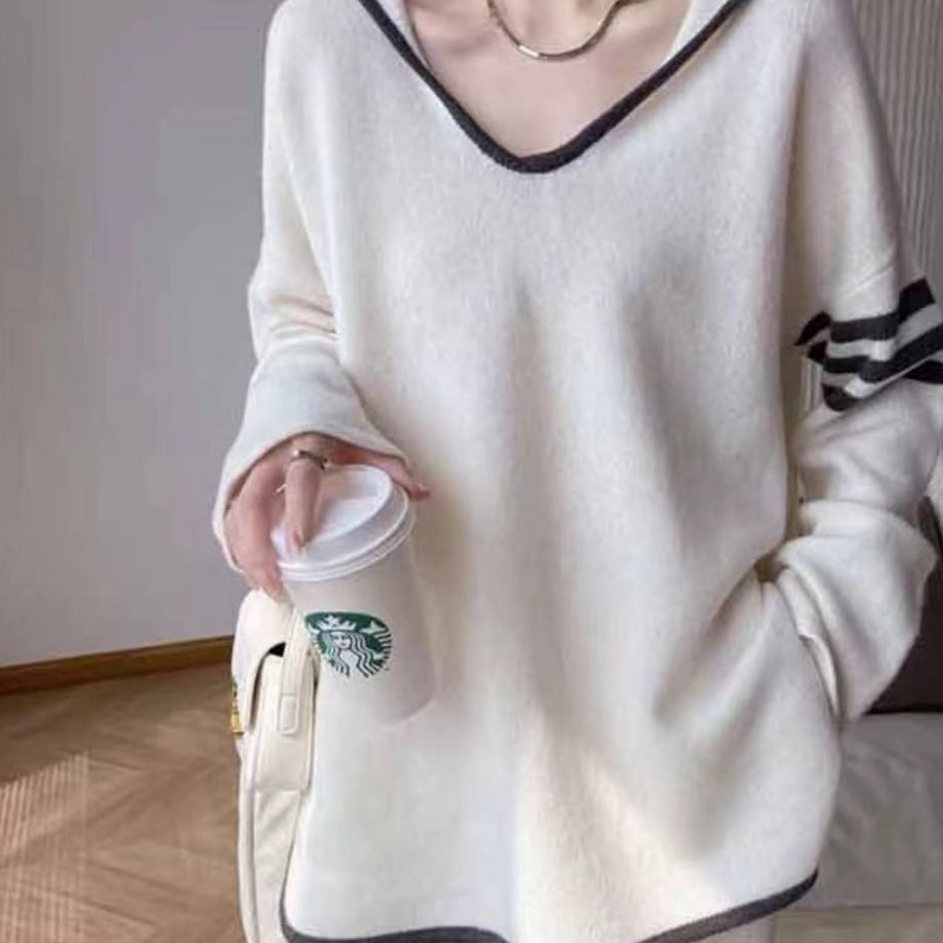 TEMU 여성용 루즈핏 V넥 스웨트셔츠
