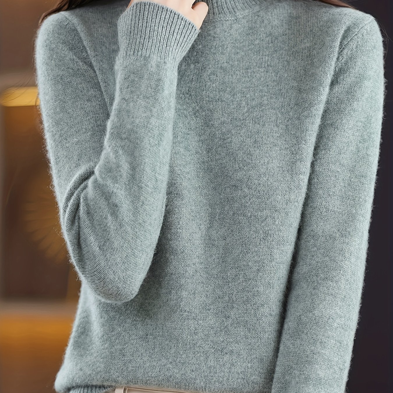 TEMU 여성용 슬림핏 단색 스웨터, 스타일리시하고 따뜻하며 가을, 겨울에 완벽하며 루즈핏과 두꺼운 베이스 레이어가 특징입니다.
