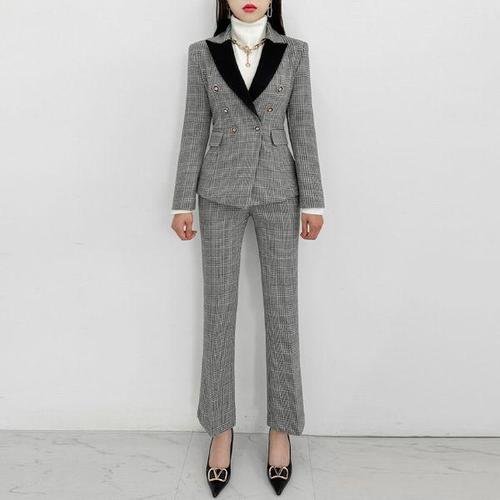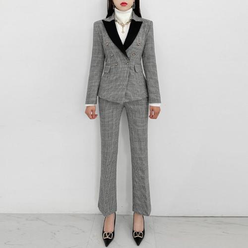 [모리스커밍홈]고방체크 더블버튼 자켓 슬랙스 2종세트_M2409SE126C