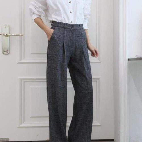 [다잇템_패션]여성 넓은 편한 핀턱 빅체크 베이직 슬랙스