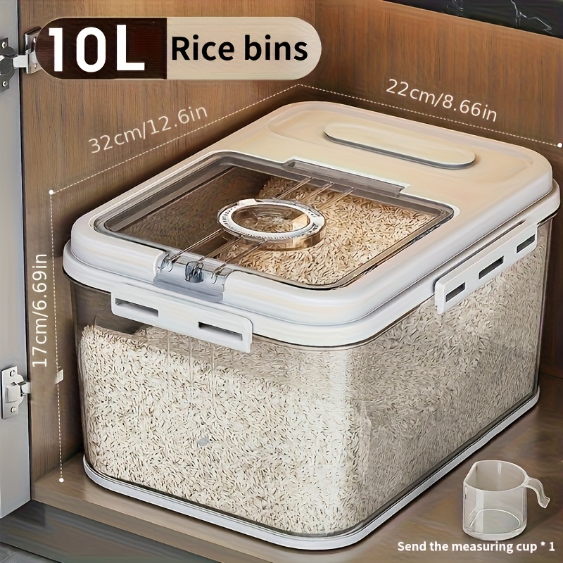 TEMU 1pc 에어타이트 식품 보관 용기, 측정 컵 포함 - 주방, 애완 동물 식품, 건조 식품, 설탕, 쌀, 밀가루, 고양이 식품용 재사용 가능한 사각형 곡물 분배기 - 손세척만, 대용량 밀폐 식품 보관 바구니, 애완 동물 식품 보관 용기|트라이탄밀폐용기