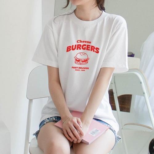 [험블][험블] 치즈버거 프린팅티 라운드넥 루즈핏 여성반팔티 (7299006A)