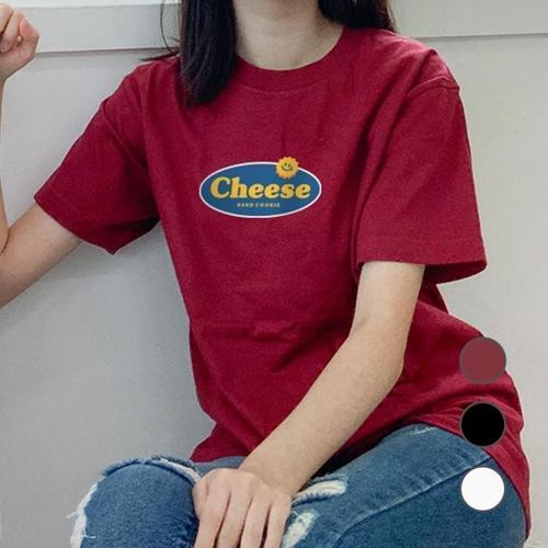 [험블][험블] 치즈샌드쿠키 레터링 오버핏 프린팅 여성반팔티셔츠 (7064509A)