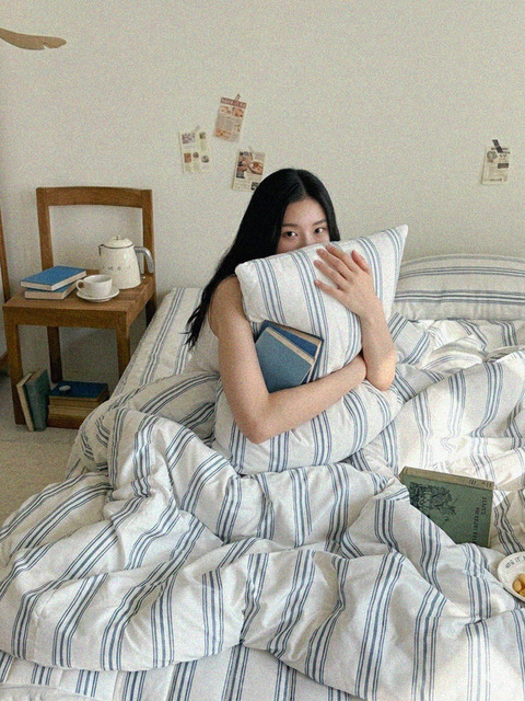 [마리엔젤] 알러지케어 먼지없는 리네아캄 스트라이프 네이비캄 사계절 차렵이불 4종 풀세트 10%