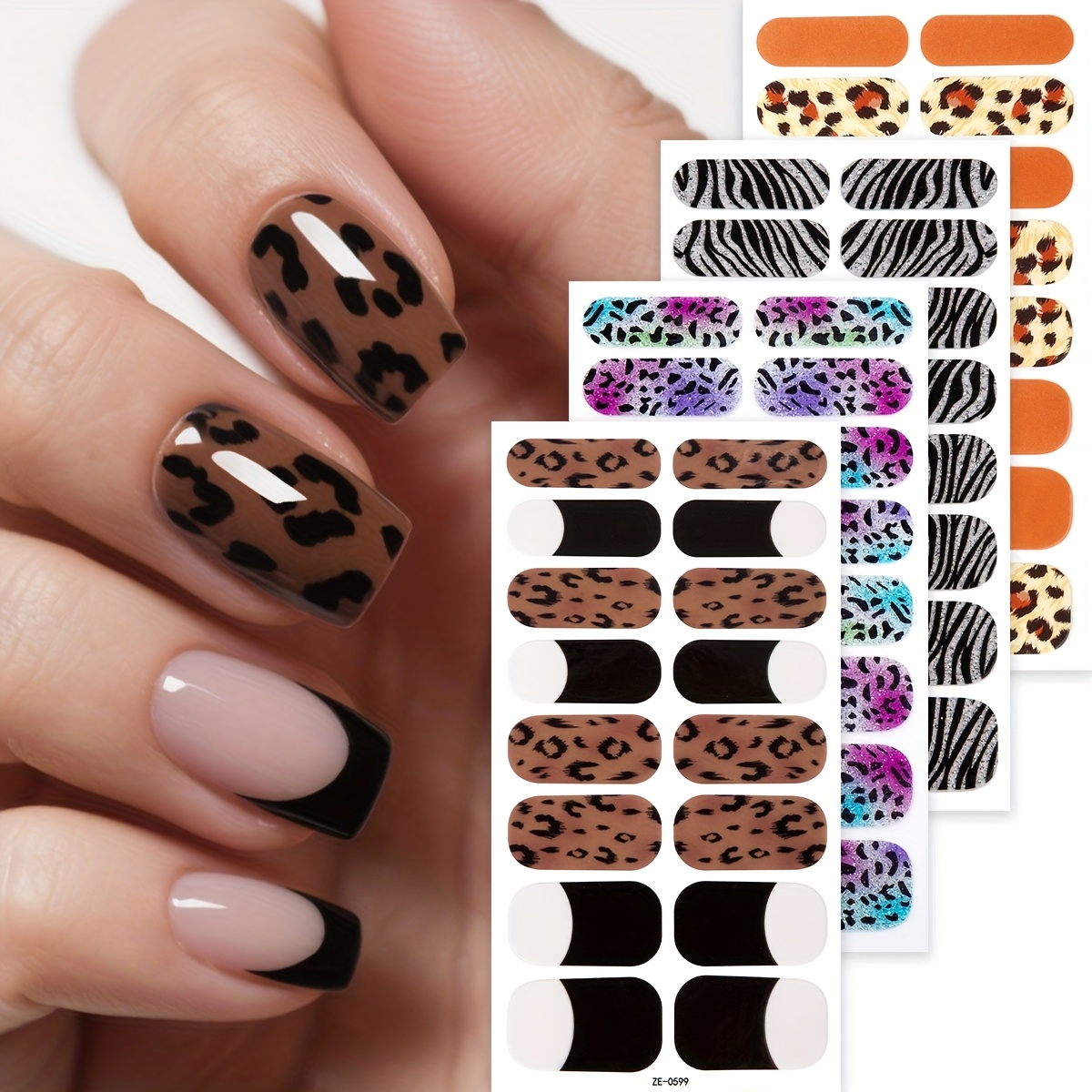 TEMU 64개 자체 접착식 프린트 네일 랩 - 여성용 반짝이는 동물 무늬 스티커, 다양한 패턴의 쉬운 DIY 풀 네일 아트, 내구성 있는 플라스틱 소재 & 광택 마감 (홈 살롱 사용)