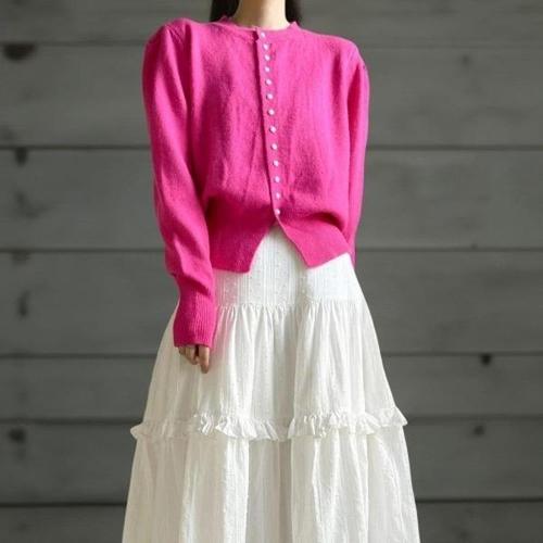 [신상오픈런]|CSJ6A1F|여성 벌룬 소매 라운드넥 니트 가디건 무지 디자인_23705297_597559
