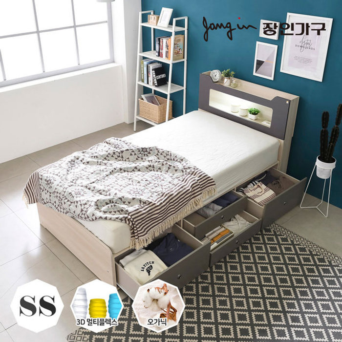 장인가구 [비밀특가] 스텔라 LED 조명 수납헤드 깊은4서랍 침대SS_포켓20T매트