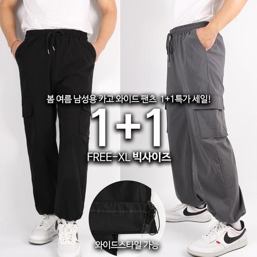 1+1 남자바지 카고바지 작업복 빅사이즈 스판 밴딩 아이스 바지 냉장고 팬츠