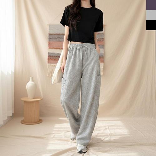 [옷자락] 여성 와이드 카고 조거 트레이닝팬츠