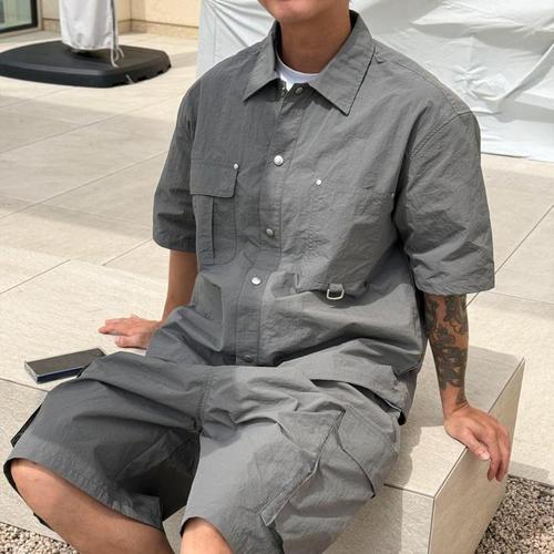 [파라노말샵](투피스) 바스락 반팔 남방 셔츠 카고 팬츠 반바지 세