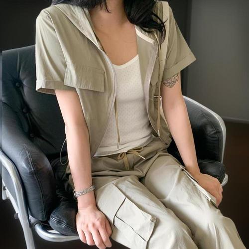 여성 탱크 집업 후디 반소매 카고세트