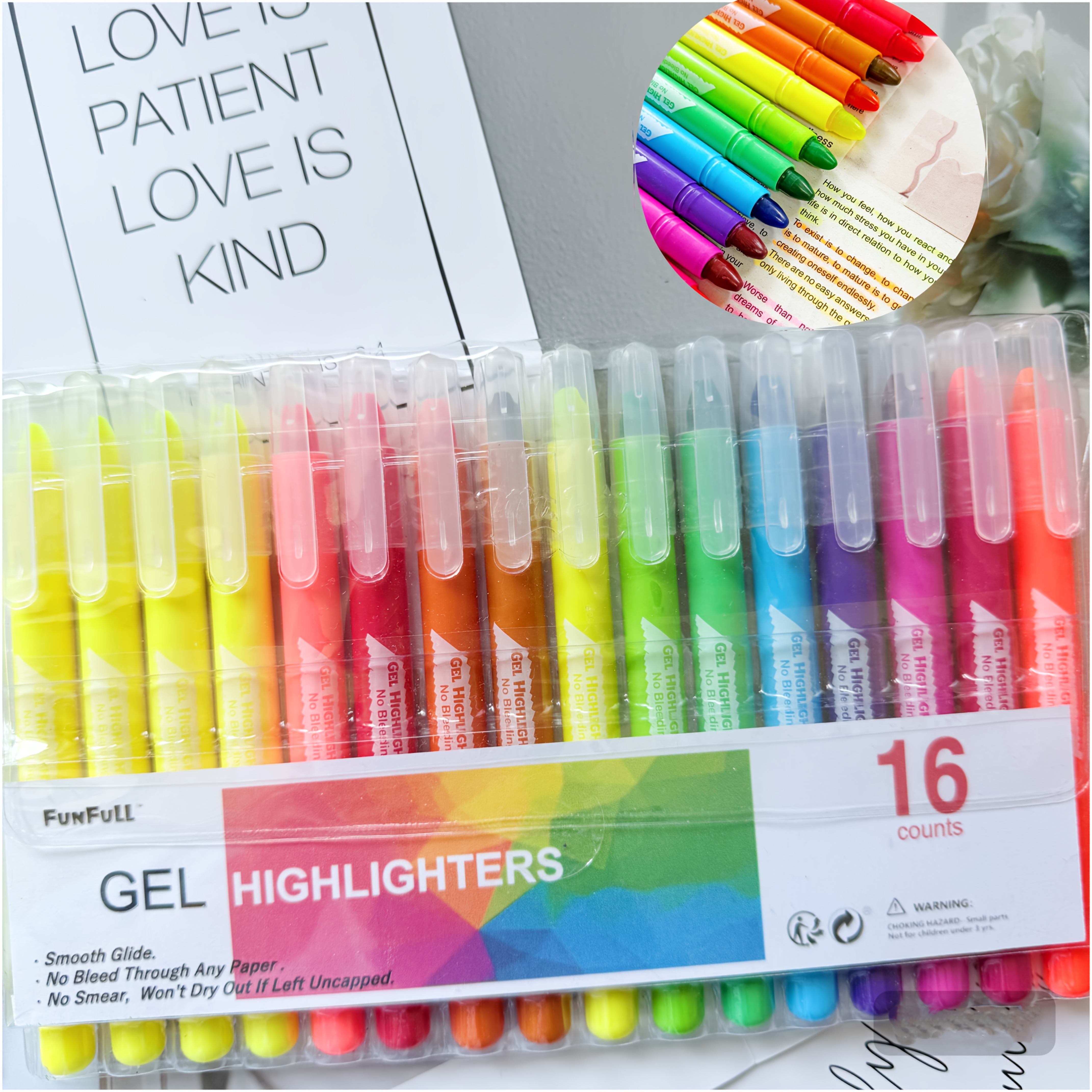 TEMU 16개 진한 젤 하이라이터 - 흘러내지 않음, 종이 안전, 부드러운 슬라이드, 16가지 다양한 색상으로 일기, 독서 및 창의적인 프로젝트에 적합, 일기용품, 아름다운 서류, 투명 케이스|편지지