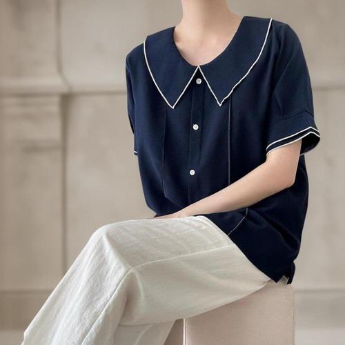 여자 모양 카라넥 여름하객룩 반소매 블라우스