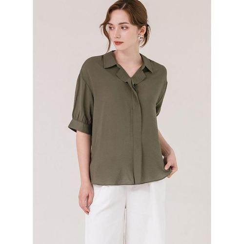 [막스까르띠지오]그린티 오픈카라 루즈핏 반팔 블라우스