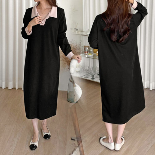 [미니멈에브리데이][미니멈 에브리데이]셔츠 카라 배색 롱 원피스 (EB2OW069D)