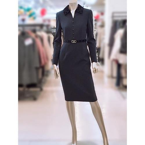 지고다그 여성 가을 간절기 배색 투인원 롱 원피스 카라티 버튼 디자인 플레어 드레스 LJM1786