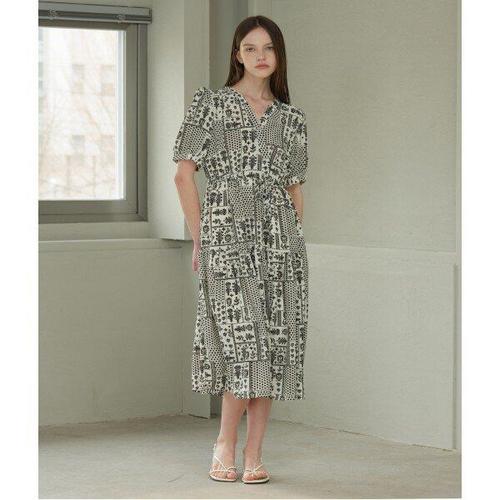 [비엔엑스]노카라 프린팅 배색 반팔 원피스 (BX2OP011L0)