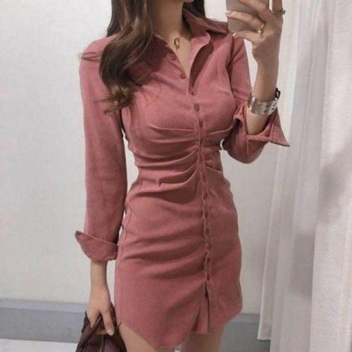캐주얼 셔츠 원피스 슬림핏 여성 카라 미니 셔 WFLMSQJ