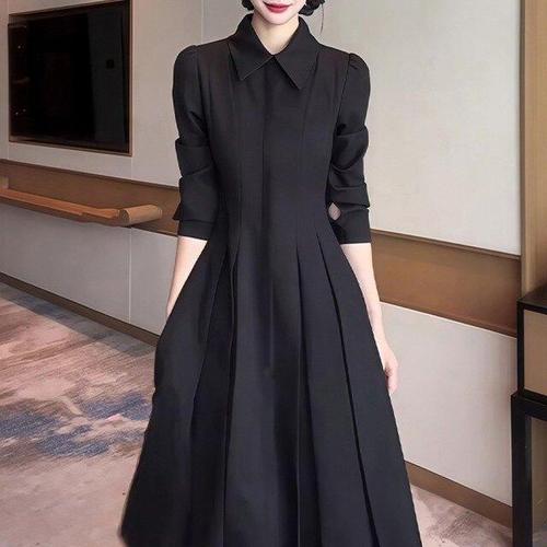 고급 플리츠 퍼프 원피스 여리핏 롱원피스 체형보정