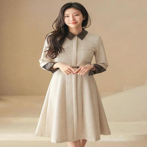 (~XXL까지) 스멀더스 숄카라 레더 실버 버튼 플레어 트위드 원피스 봄,가을 단독 하객룩 오피스룩 모임룩