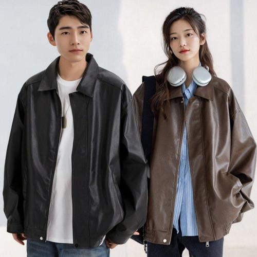 가을용 남녀공용 오버핏 항공 점퍼 레더 카라 자켓 WFLN0UJ