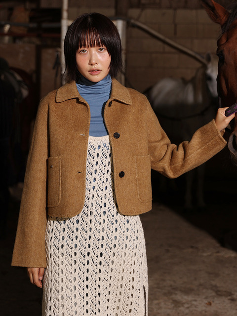 [네이키드서프클럽] 핸드메이드 울 숏코트 (Camel)