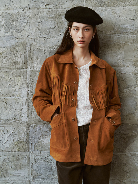 [프리터] Fringe Leather Jacket Camel_F254JK02