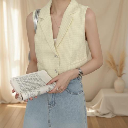 여성 크롭 민소매 조끼 여름 카라 베스트룩 데일리 패션 트렌디 캐주얼 아이템 일상 상의 심플 베이직