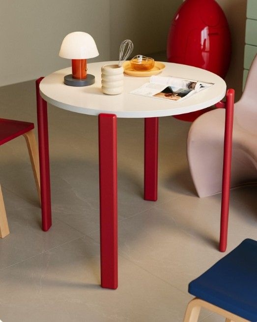 [해외]레드 투톤 식탁 테이블 원형 라운드 우드 카페 원룸 80cm