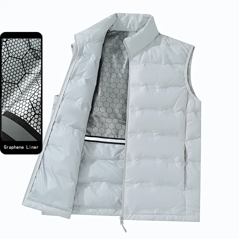 90% 화이트 덕 다운 겨울 커플 조끼 민소매 퍼퍼 자켓 그래핀 라이너 스탠드 칼라 따뜻한 다운 조끼 코트 빅 사이즈 6XL
