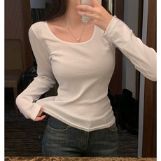세븐에이프릴 여성용 스퀘어넥 기본 티셔츠 베이직 무지 긴팔티 이너티 6color