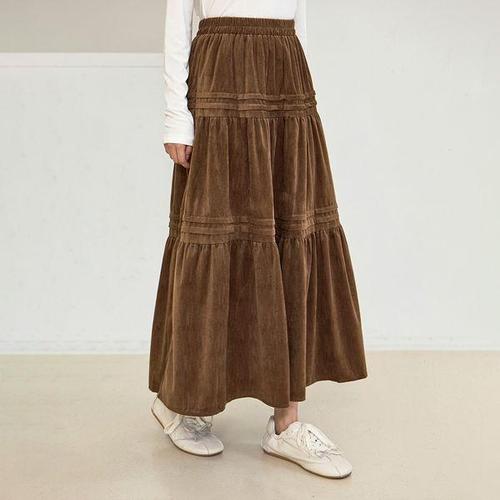 [신상오픈런]여성 골덴 롱스커트 밴딩 캉캉 가을 겨울 데이트룩