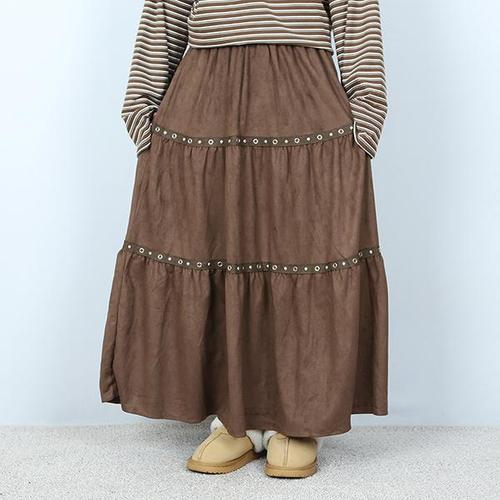 [파라노말샵]스웨이드 펀칭 밴딩 캉캉 롱 스커트 ()
