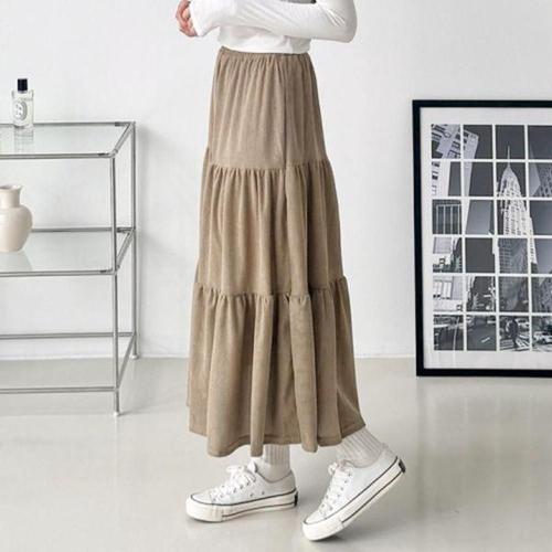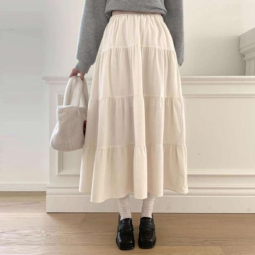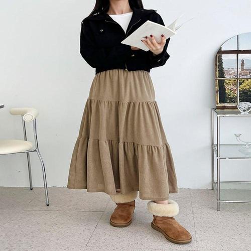 [신상오픈런]여자 골덴치마 밴딩 캉캉 가을 겨울 데이트룩 롱스커트