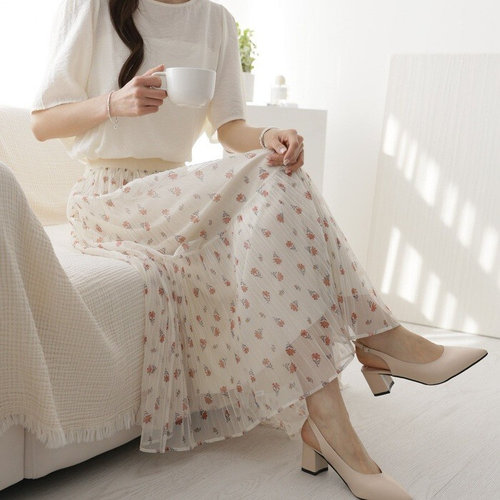 플러리싱 / 꽃패턴 캉캉 프릴 밴딩 롱 스커트 플러리싱