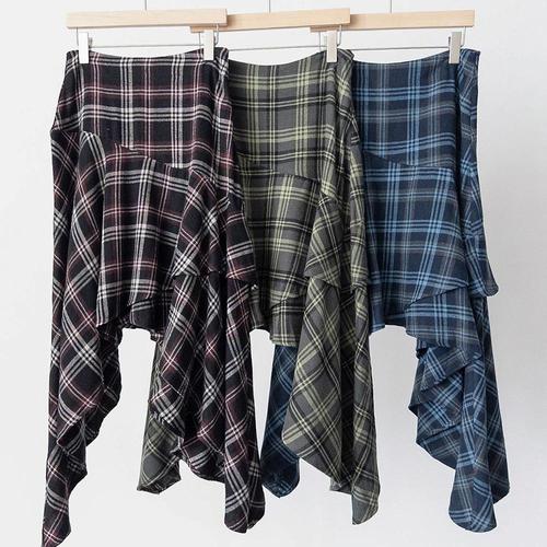 [옷자락] 여자 가을 프릴 레이어드 캉캉 언발 체크 롱스커트