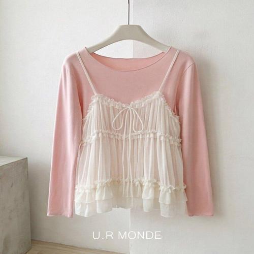 [옷자락]여성 레이어드 뷔스티에 캉캉 프릴 스트랩 반팔티