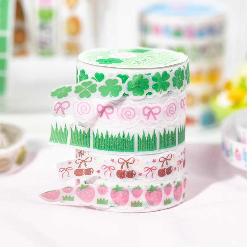 5 롤/세트 레트로 귀여운 Y2K 반짝이 장식 접착 테이프 플래너 핸드북 DIY Scrapbooking 저널 콜라주 재료 스티커